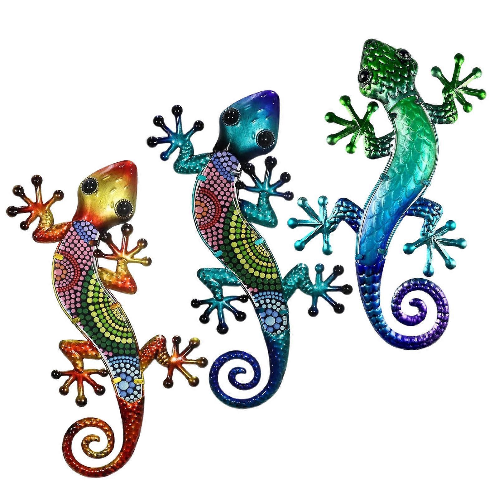 3Pcs Acrylic Gecko Wall Decoration Home Office Living Room Indoor Outdoor Garden Wall Art Iron Hanging Colorful Lizard Ornament Pendant Christmas Gift