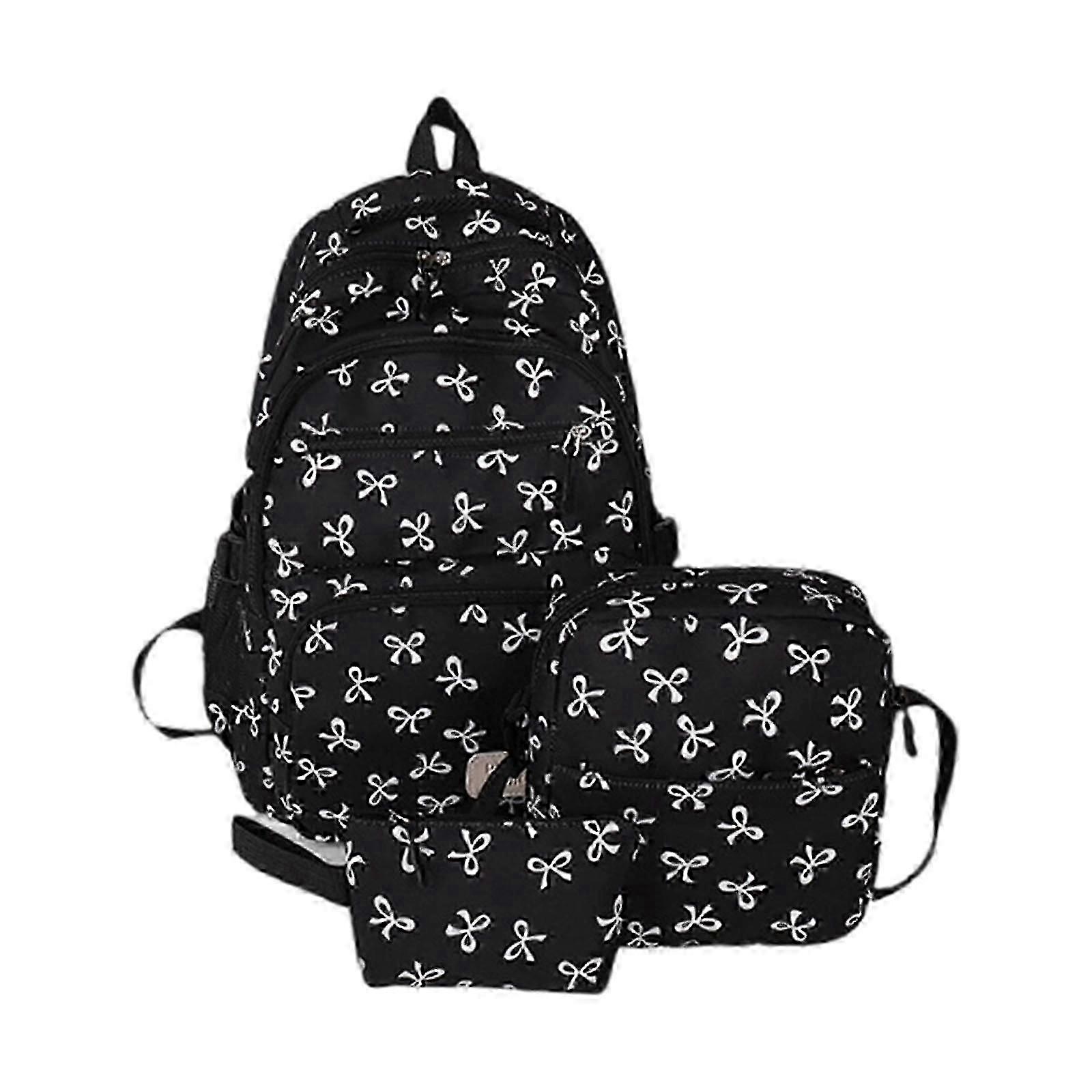 3-Piece Casual Aesthetic Backpacks Set - Large Capacity Student Travel Rucksacks with Sweet Bows