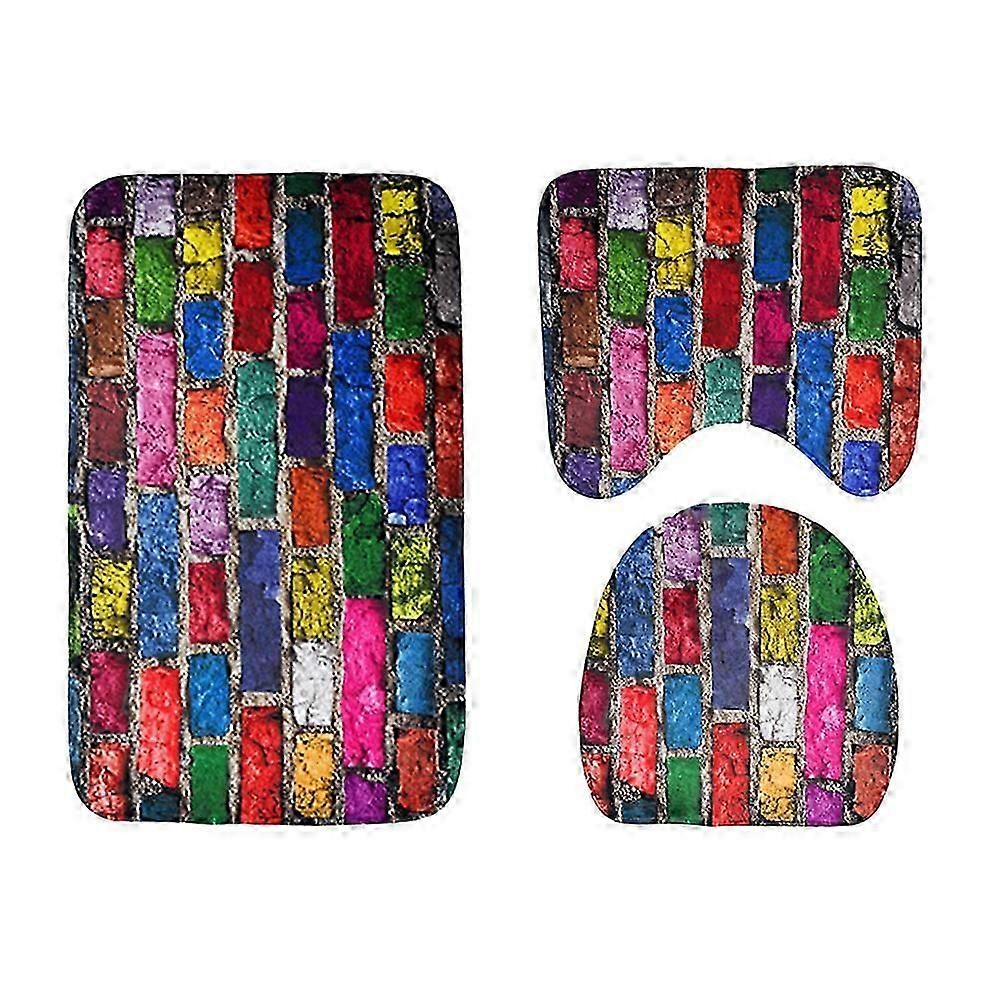 3Pcs Colorful Brick Wall Bathroom Toilet Rug Mildew Proof Non-slip Bath Mat U-Shaped Toilet Mat Toilet Lid Cover for Men Women Kids Bathroom Accessori