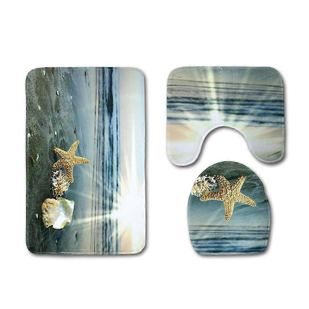 Three Pieces Graphics Bathroom Mat Set Nonslip Bath Bathtub Rug Carpet Toilet Seat Lid Cover (Sea Star)