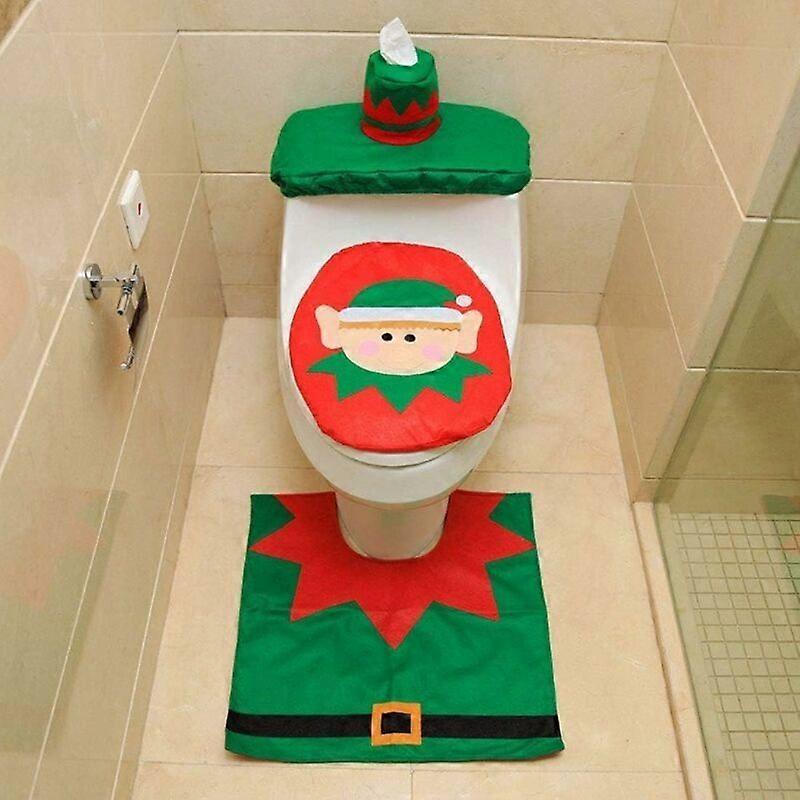 3 Pieces Christmas Toilet Seat Cover Christmas Decorations Toilet Seat Cover for