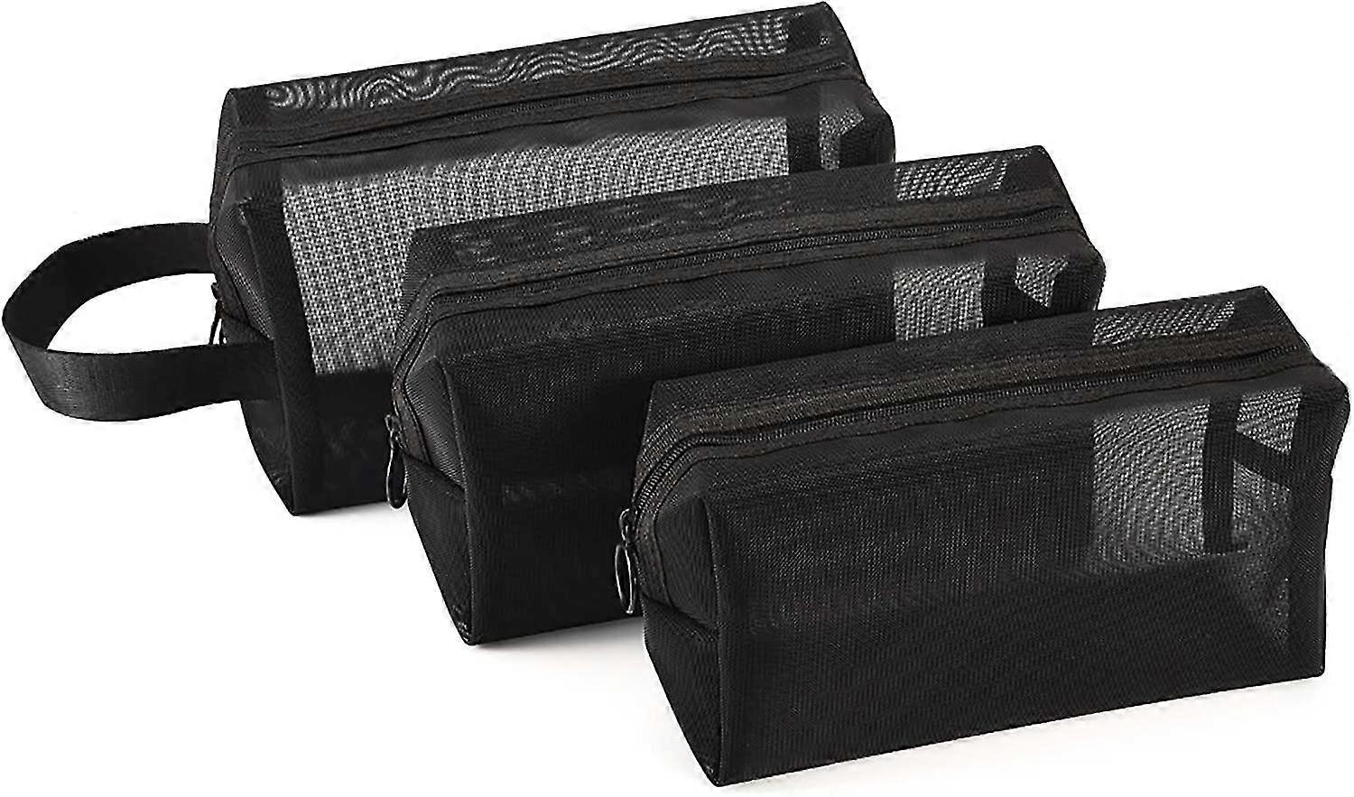 3-piece Cosmetic Bag, Mesh Cosmetic Bag For Men And Women With Zipper, Black
