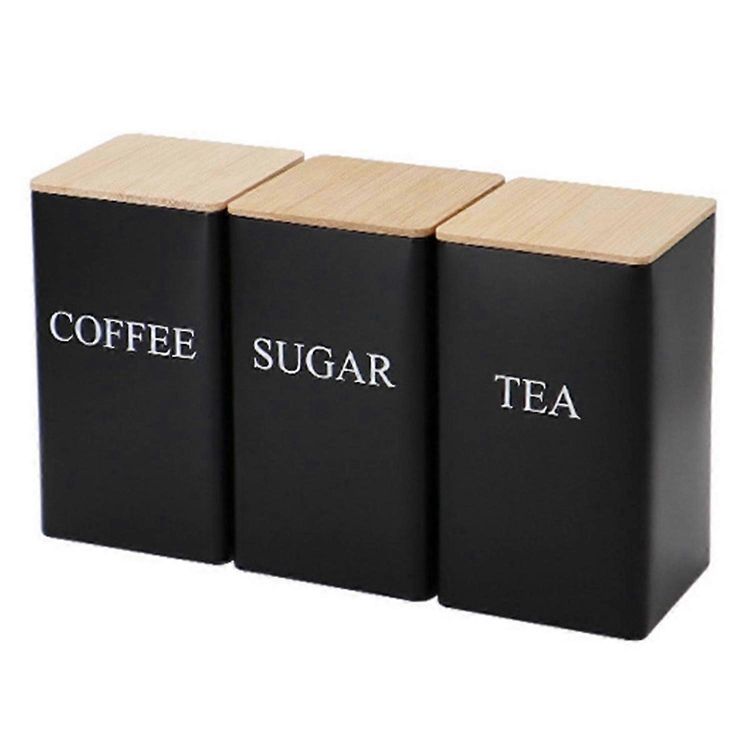 3Pcs Three-Piece Sealed Cans Creative Simple Style Bamboo Lid Iron Tea Can Snack Storage Coffee Bean