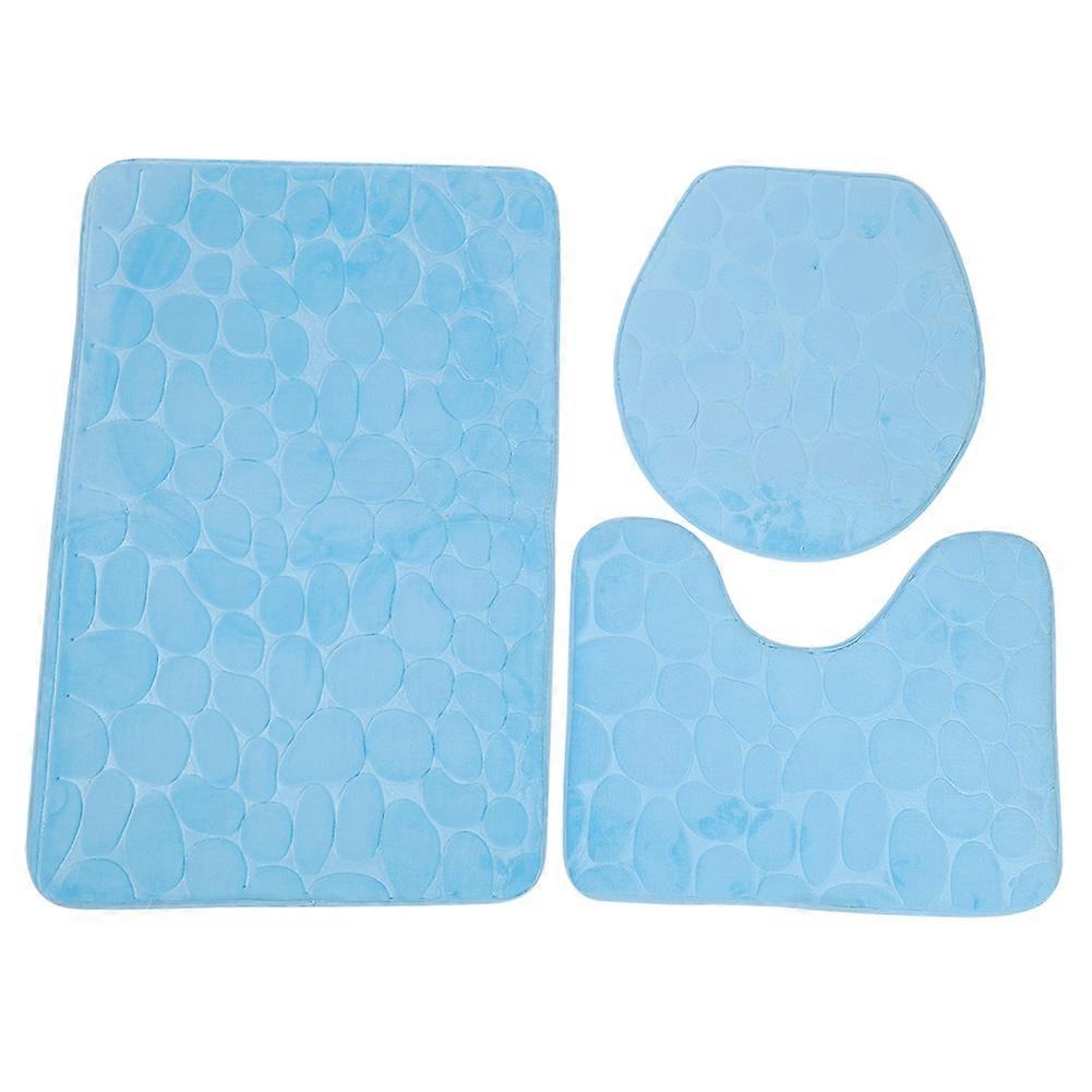 3pcs/Set Blue Pebbles Shower Curtain Rug Lid Toilet Cover Mat Non-Slip Bath Mat