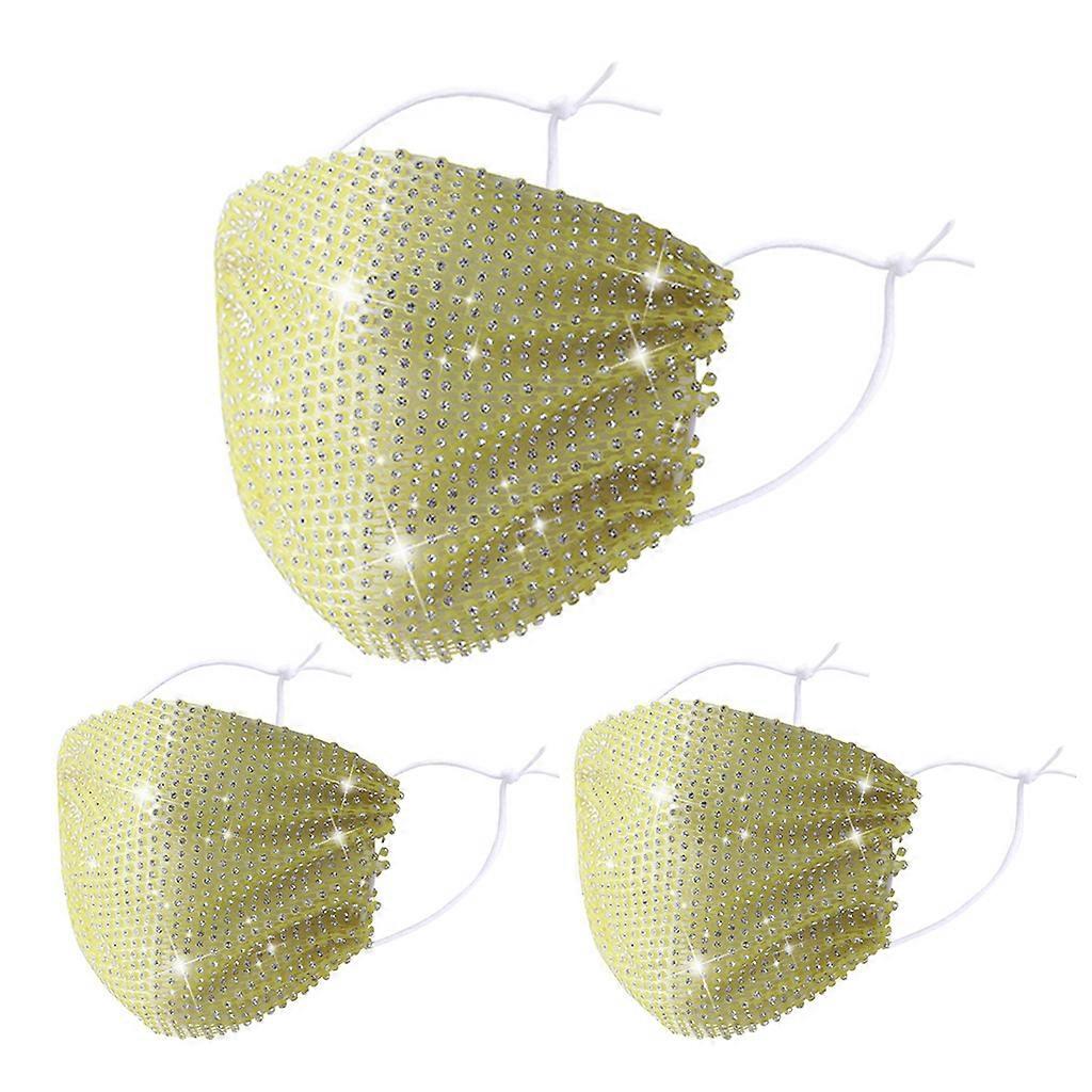 3Pcs/Set Women Men Shiny Jewelry Nightclub Face Mask Hollow Out Mesh Grid Glitter for Rhinestone Solid Color Masquerade Party Mouth Cover