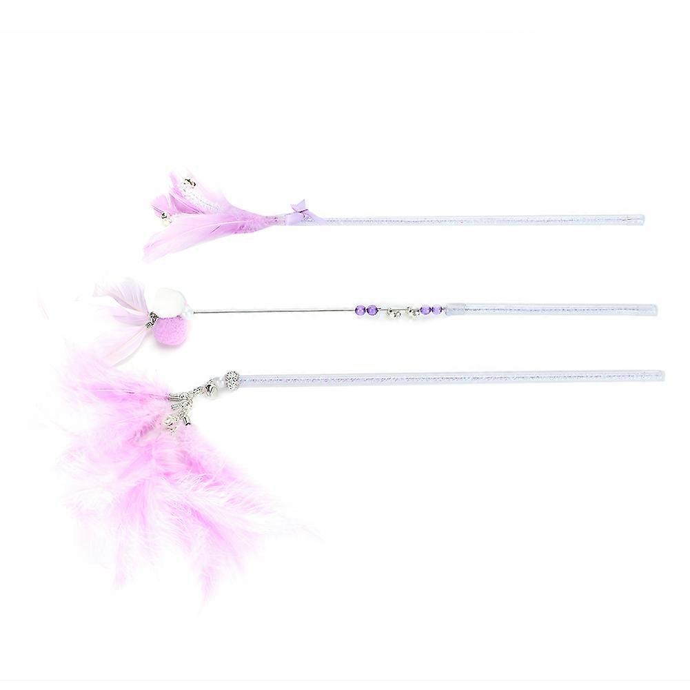 3pcs/set Cat Funny Stick Wand Bowknot Design Pet Teaser Toys With Crisp Bell And Feather