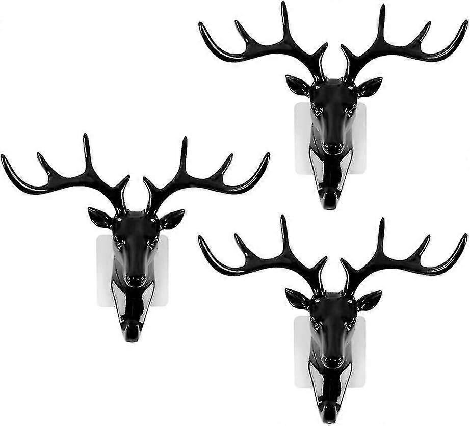 3 Piece Deer Head Wall Hook Heavy Duty Hanger Hook Deer Antler No Mark Hook (white)