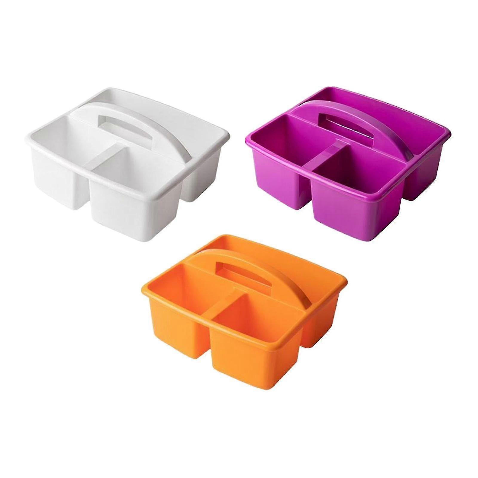 3pieces Desktop Compartment Caddy Holder Stackable Case Orange Violet White