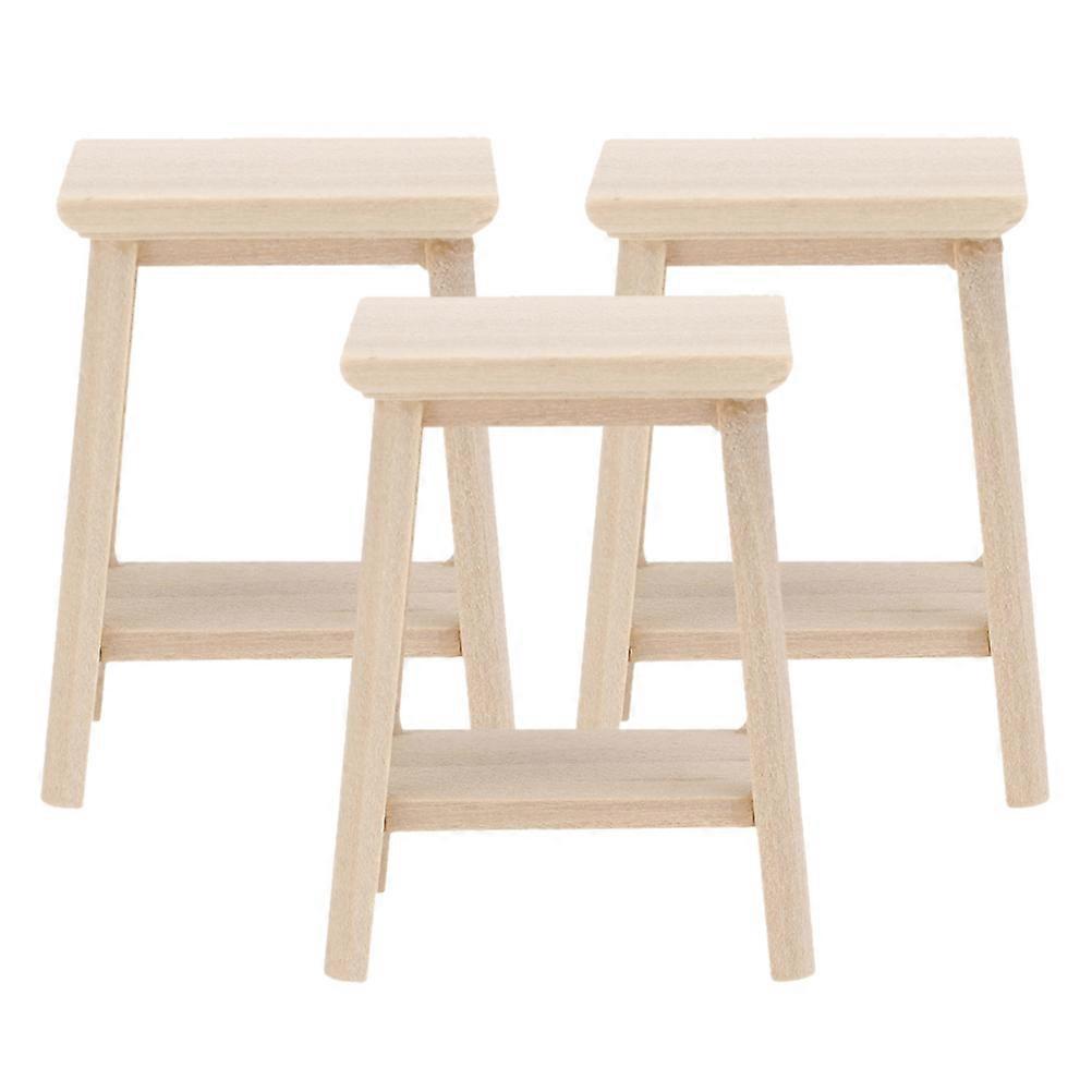 3pcs Doll House Mini Furniture Small Wood Stool Model Wooden Display Mini Stool Doll House Accessory