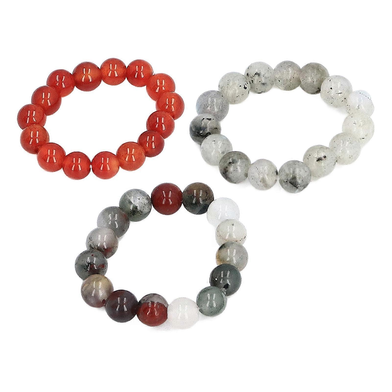 3pcs Healing Bracelet 4mm Lightweight Crystal Beaded Stretch Bracelet for Women Men Relief Anxiety Red Agate African Blood Stone Flash Stone