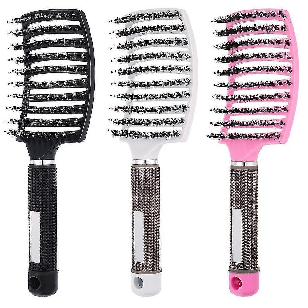 3 Pieces Vented Detangling Hair Brush Boar Bristle Curved Hair Brush Detangling