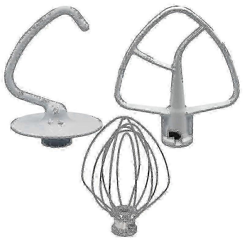 3-Piece Mixer Kit: Dough Hook, Wire Whip & Coated Flat Beater for Stand Mixers
