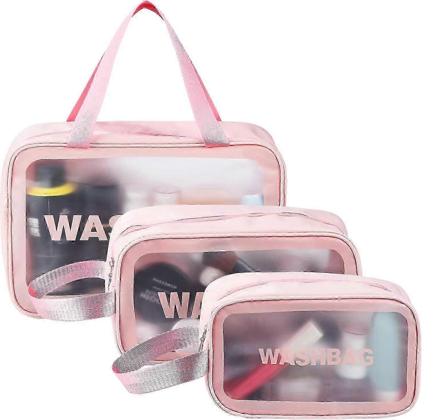 3 Pieces Large Clear Travel Toiletries Bags - Waterproof Clear Plastic Cosmetic Makeup Bags