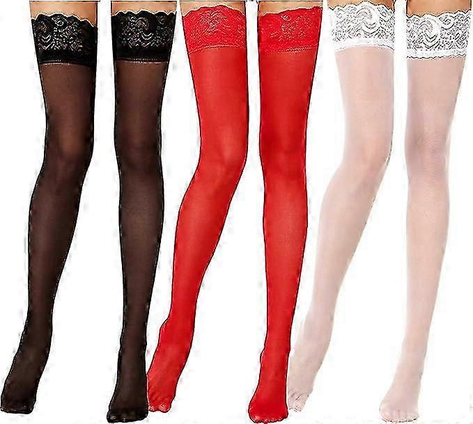 3pcs Lace Top Thigh High Stockings,black,white,red