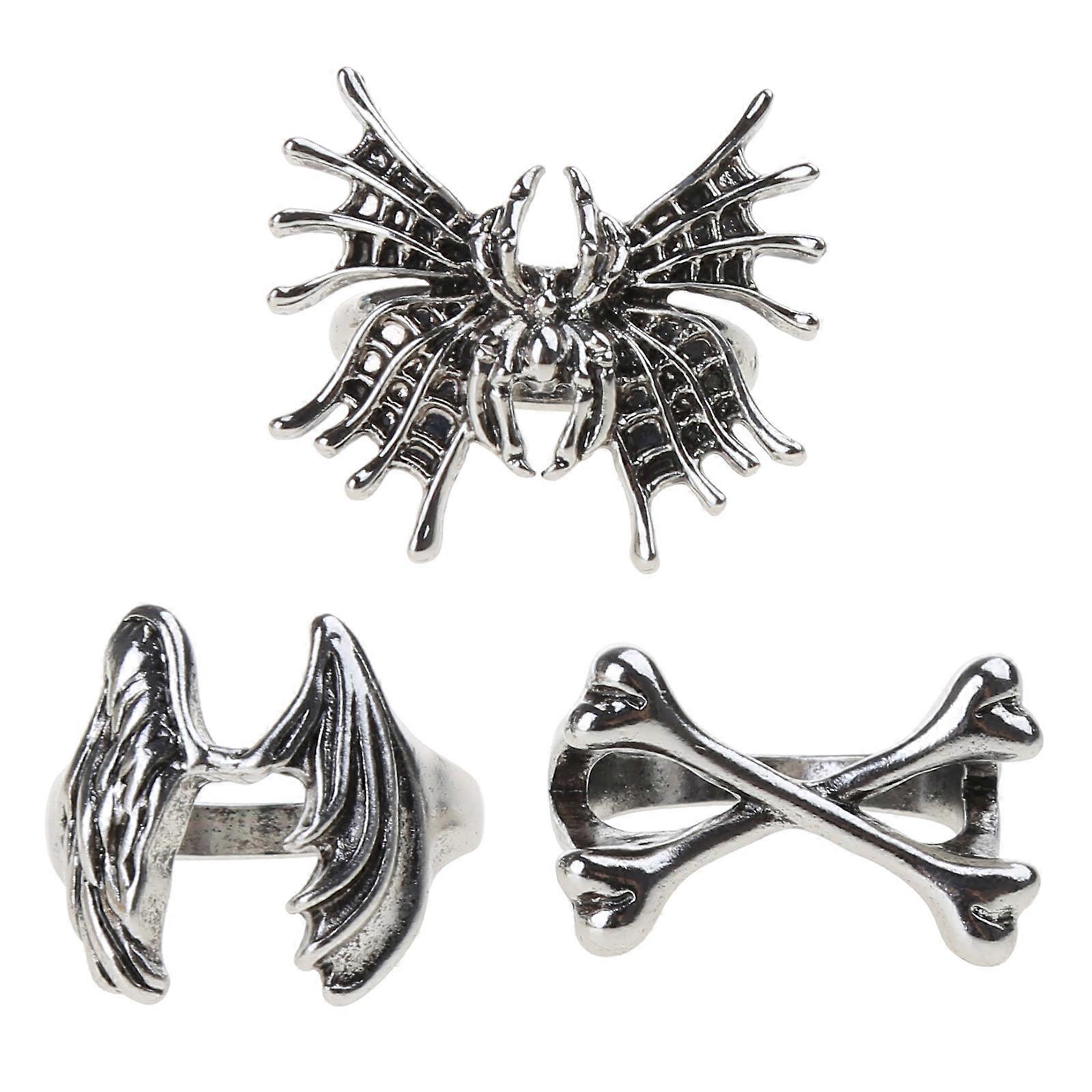 3Pcs Crossed Bone Angel Spider Butterflies Finger Ring Street Rock Novel Gothic Insect Ring Trend Men Women Jewelry Gift