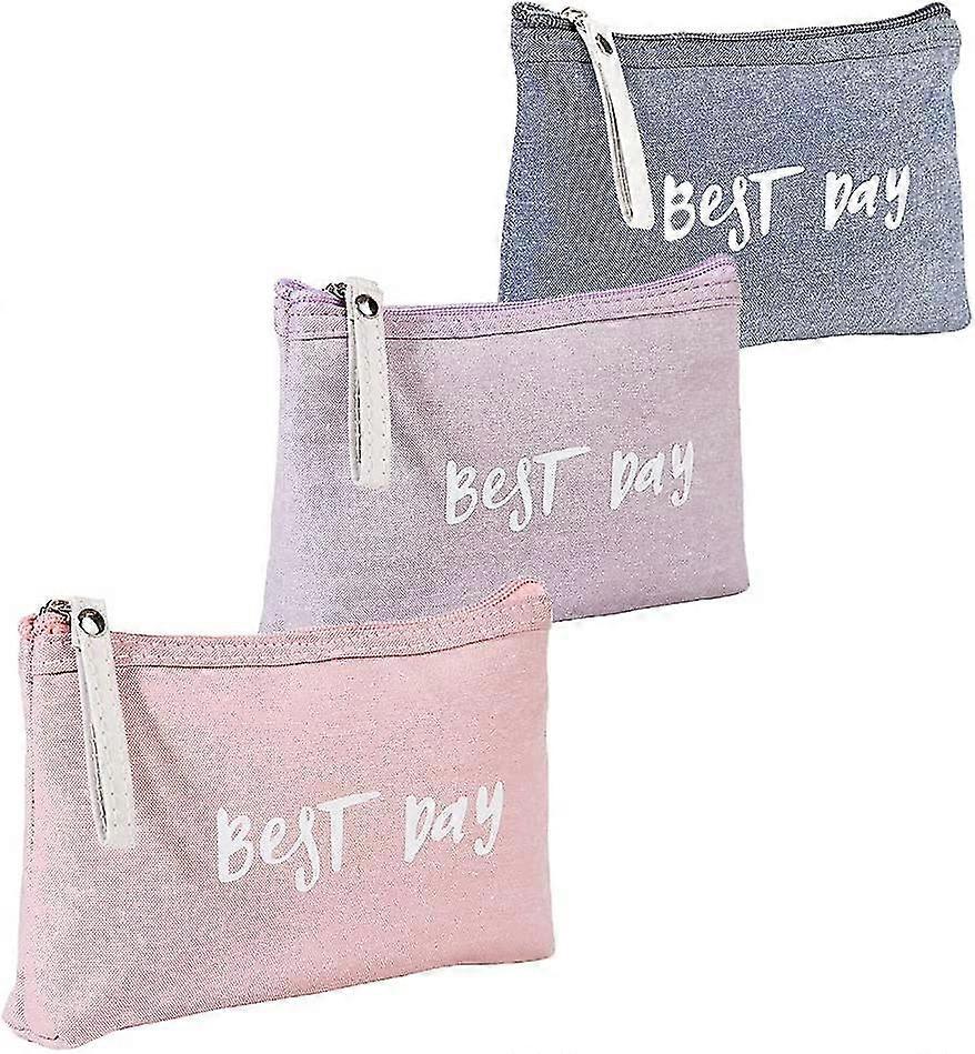 3 Pieces Small Travel Cosmetic Bag,3 Colours, Waterproof, Portable, Cotton And Linen, With Zip