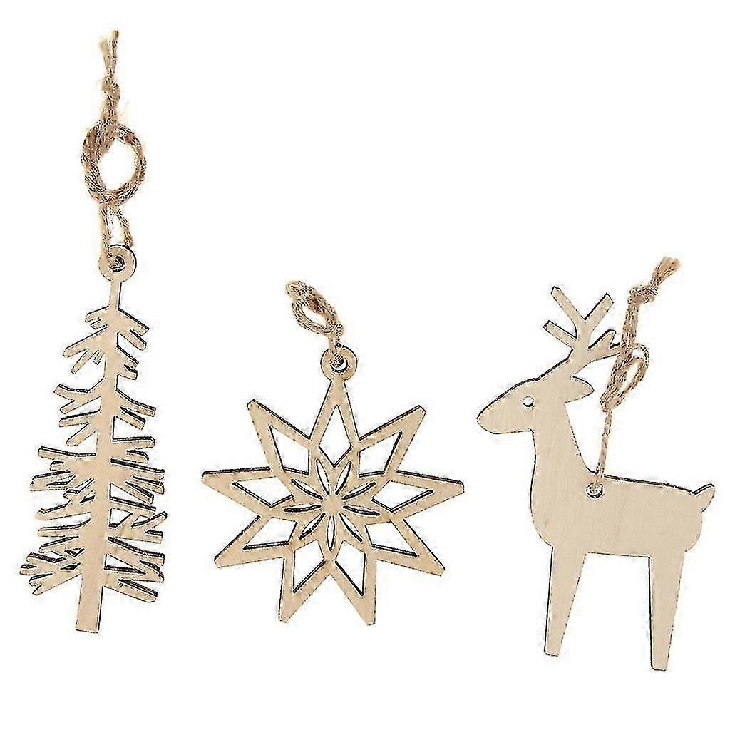 3 Pieces Wooden Snowflake Deer Christmas Tree Hanging Decoration Ornaments