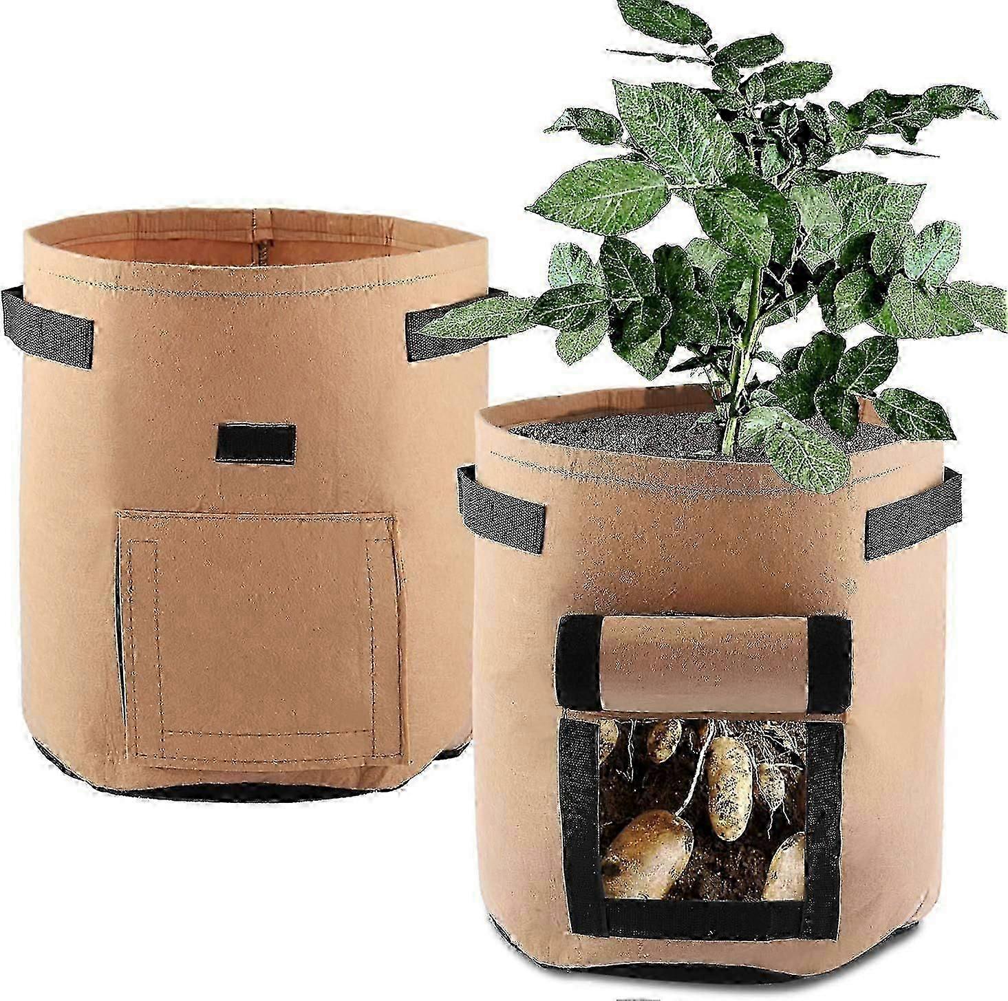 3-piece plant bag, non-woven fabric plant bag, potato bag, plant bag for potatoes, vegetables, flowers, plants (35 x 40 cm, brown)