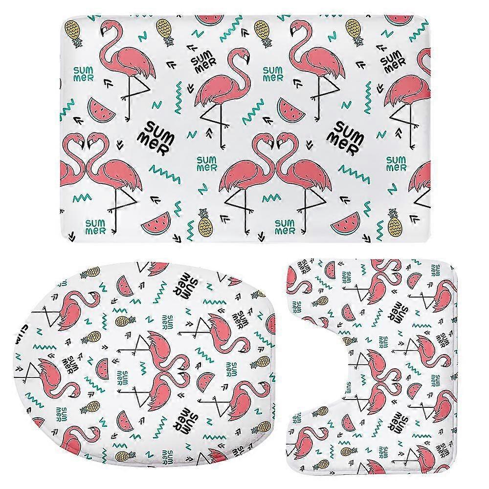 3 Pieces Non-slip Flannel Toilet Covers Mat Bath Shower Rug Flamingo