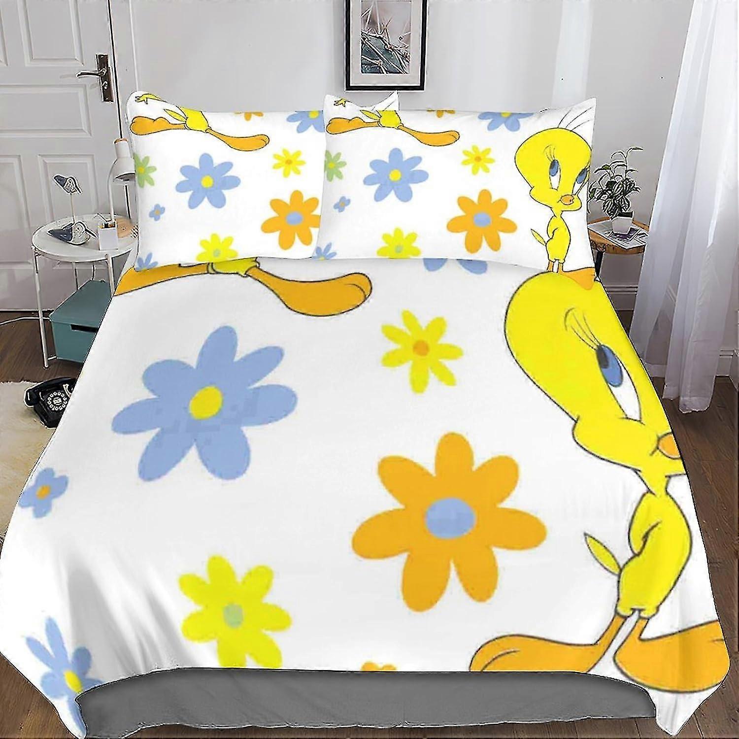 3 Pieces Cartoon Duvet Cover Bedding Set with Microfiber and Hidden Zipper Closure, Suitable for Kids