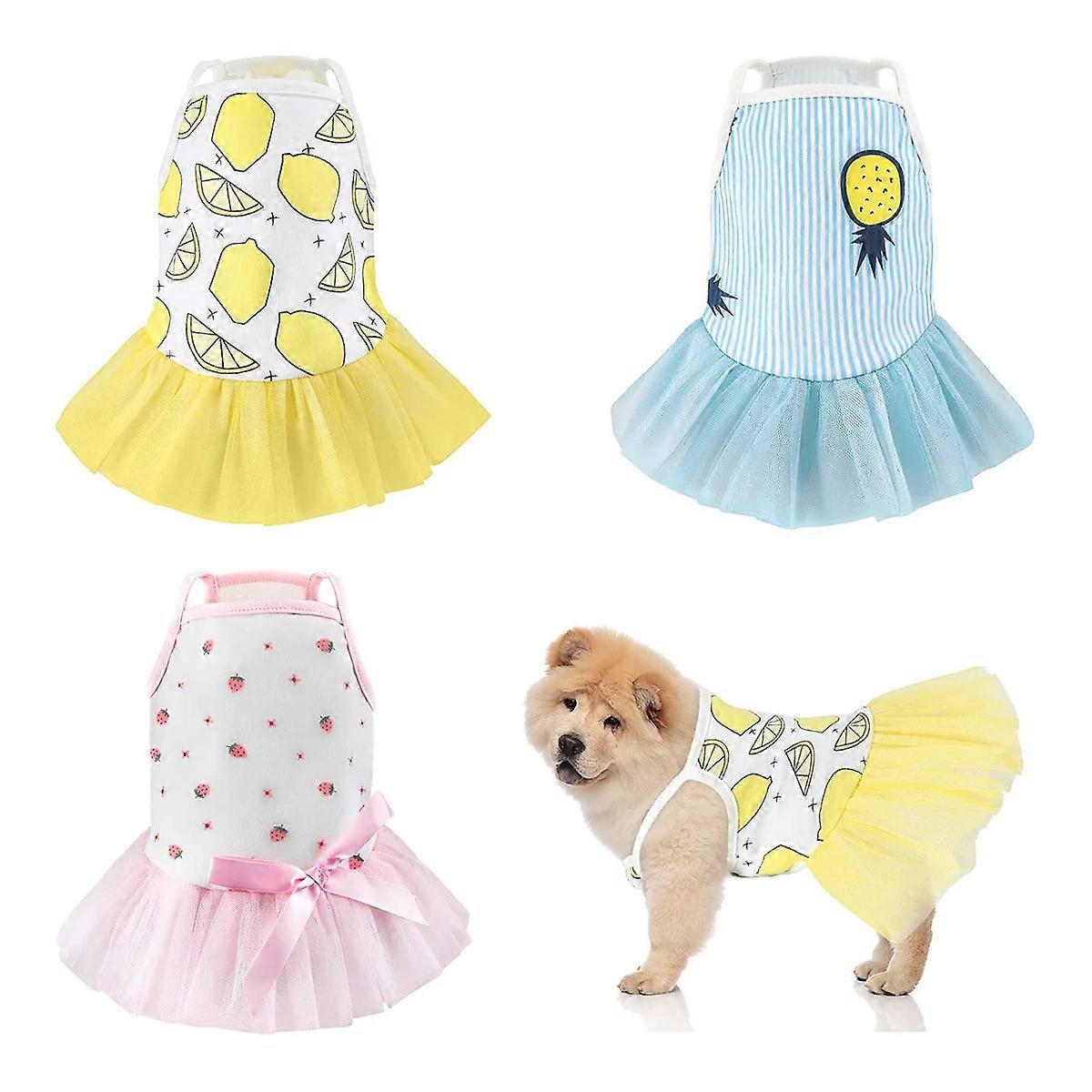 3 Pieces Dog Dress Skirt, Puppy Summer Fruits Dress, Pet Princess Summer Apparel Clothes for Small Dogs Cats