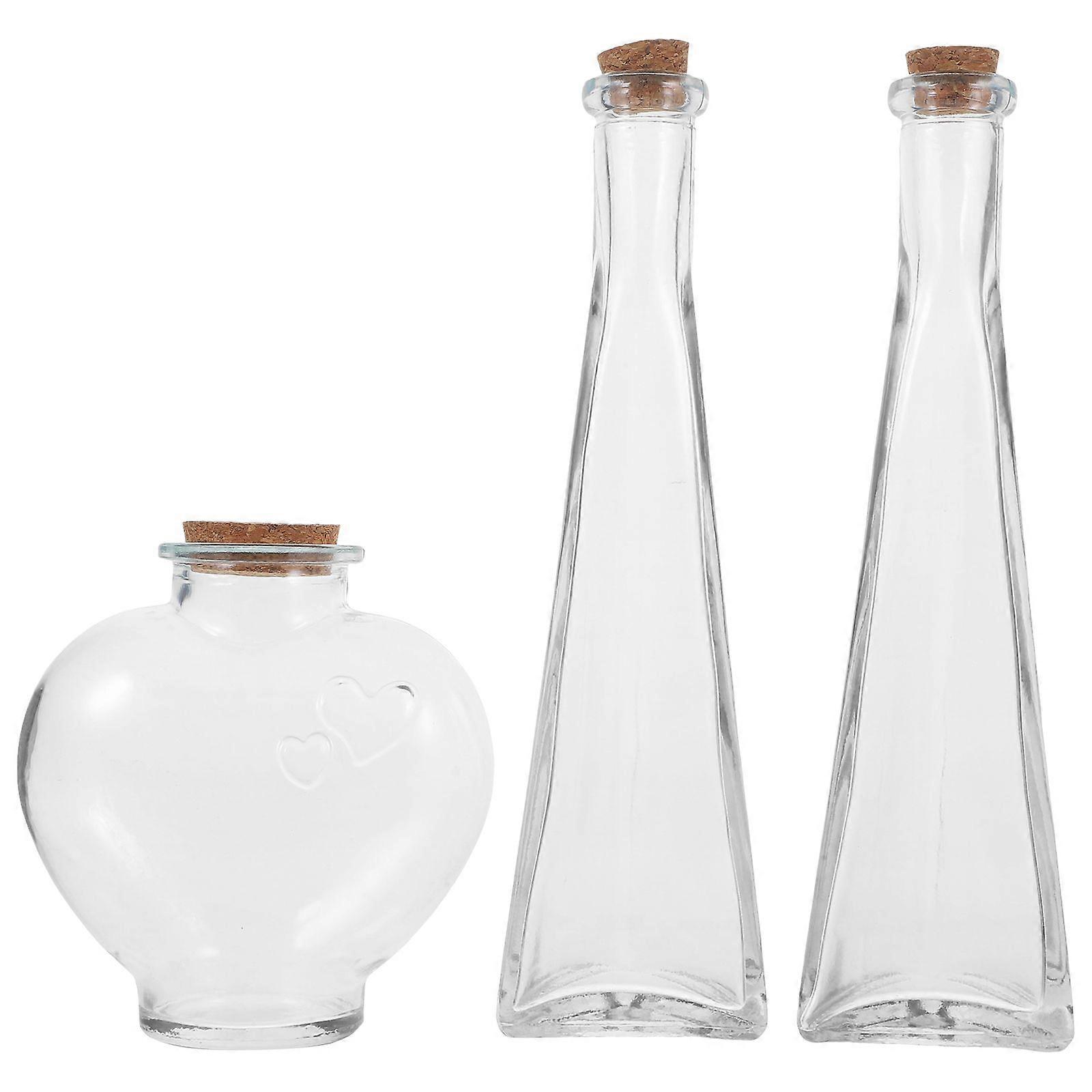 3pcs Transparent Wishing Bottle Heart Prismatic Shape Glass Jar Drift Bottle Ornament Wedding Sand Ceremony Bottle