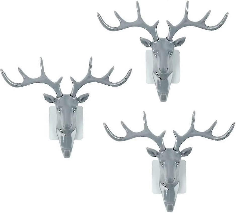 3 Piece Deer Head Wall Hook Heavy Duty Hanger Hook Deer Antler No Mark Hook (white) (santanxing)