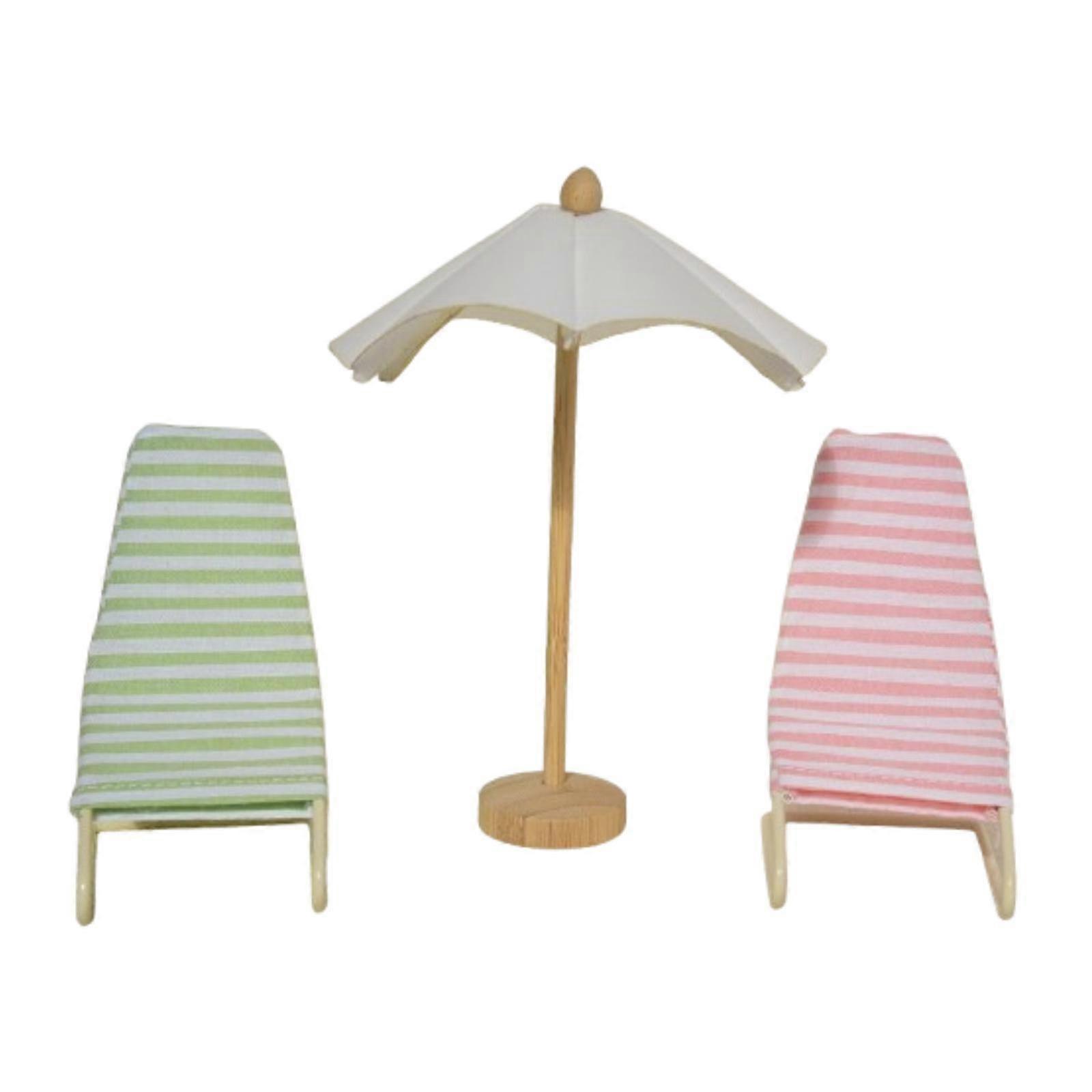 3 Pieces 1:12 Dollhouse Beach Chair and Umbrella Handmade Mini Model Simulation