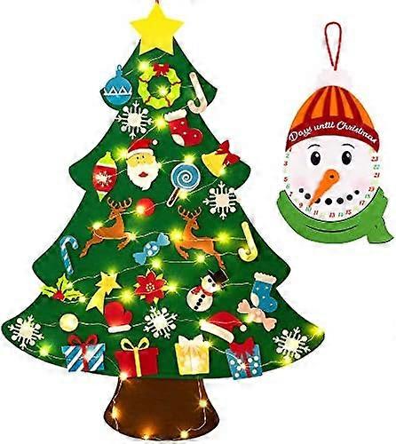 3ft DIY Lighted Felt Christmas Tree Set Plus Snowman Advent Calendar - Xmas Decorations Wall Hanging 33 Ornaments Kids Gift with String Light (Batteri