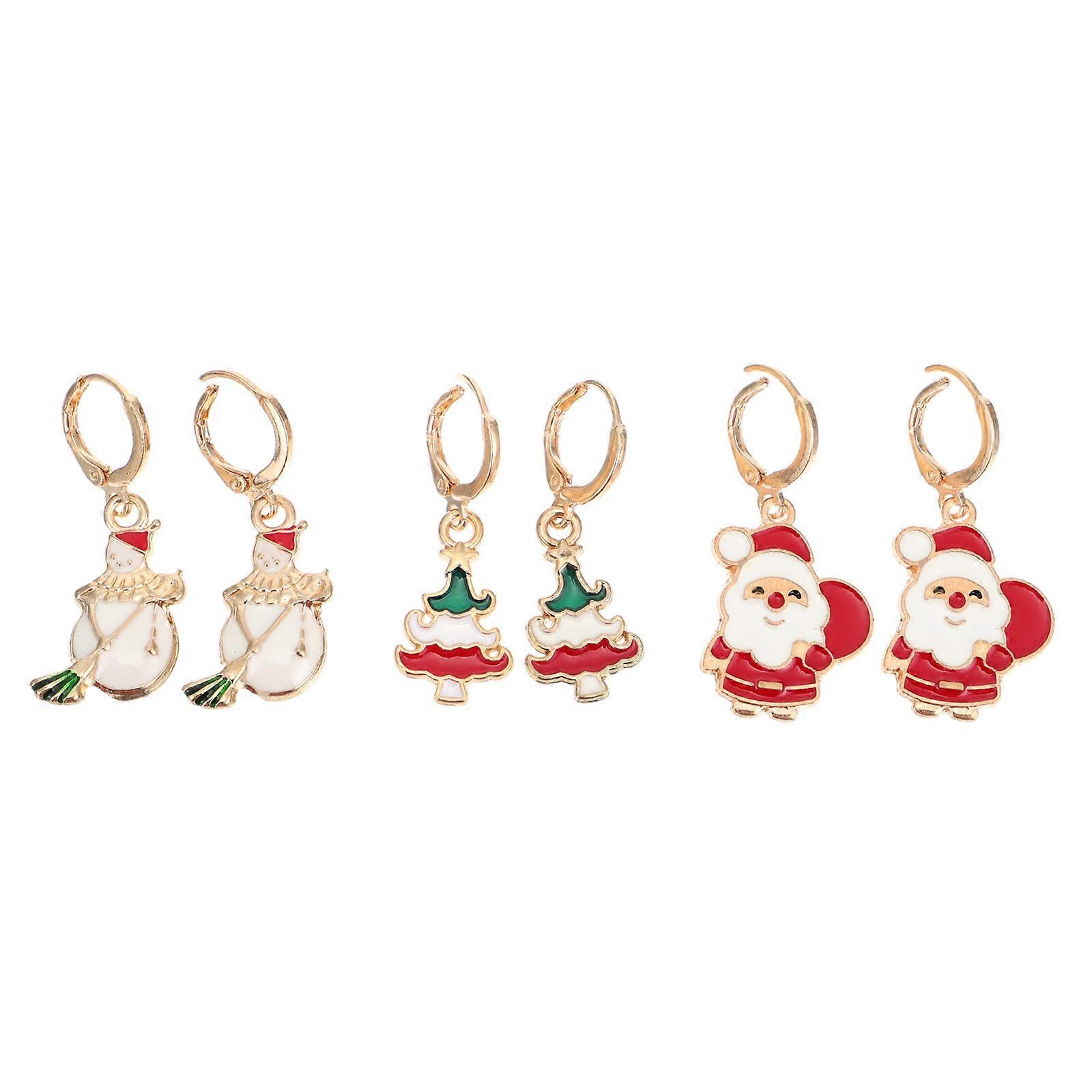 3 Pairs Xmas Designed Earrings Chic Danglers Eardrops Creative Xmas Ear Jewelry