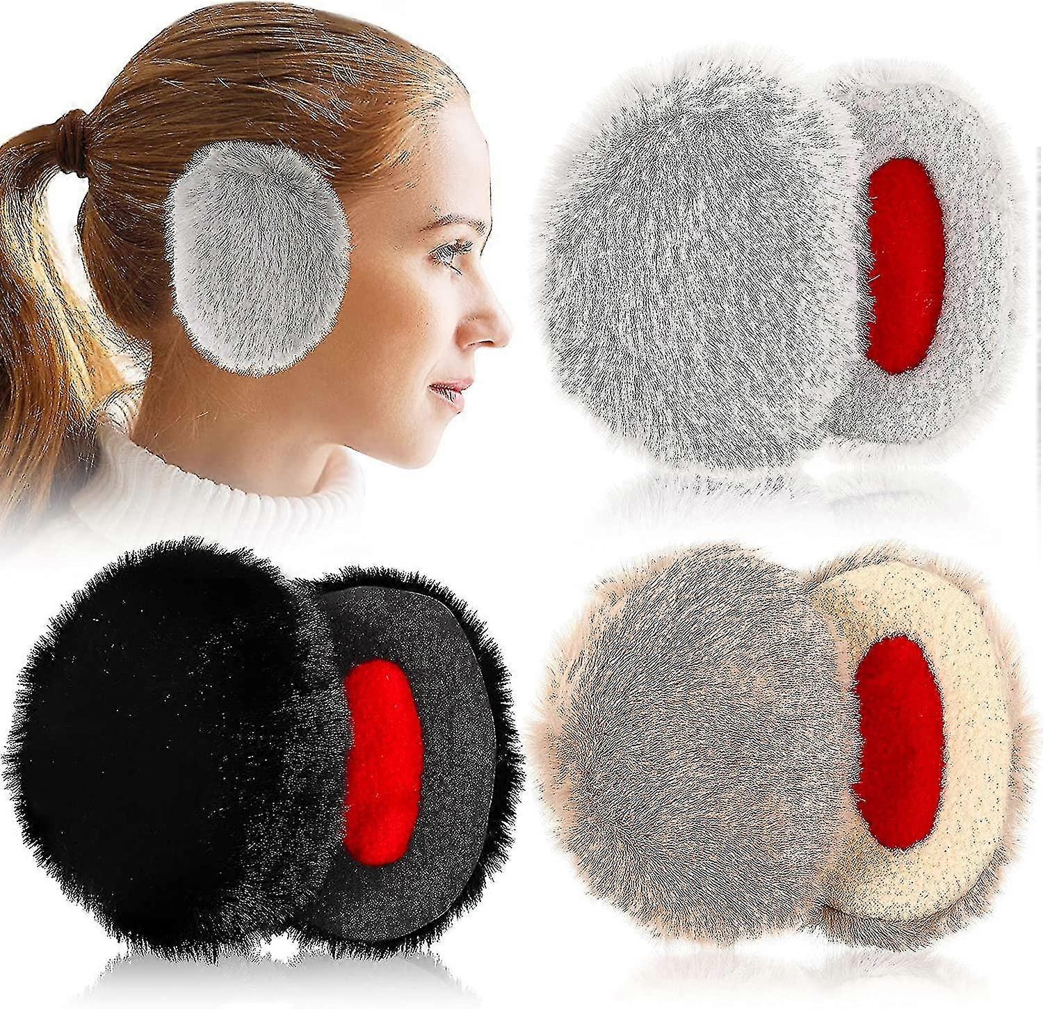 3 Pairs Bandless Ear Muffs Winter Fluffy Fleece Ear Cover Soft Thick Ear Warmers Gift