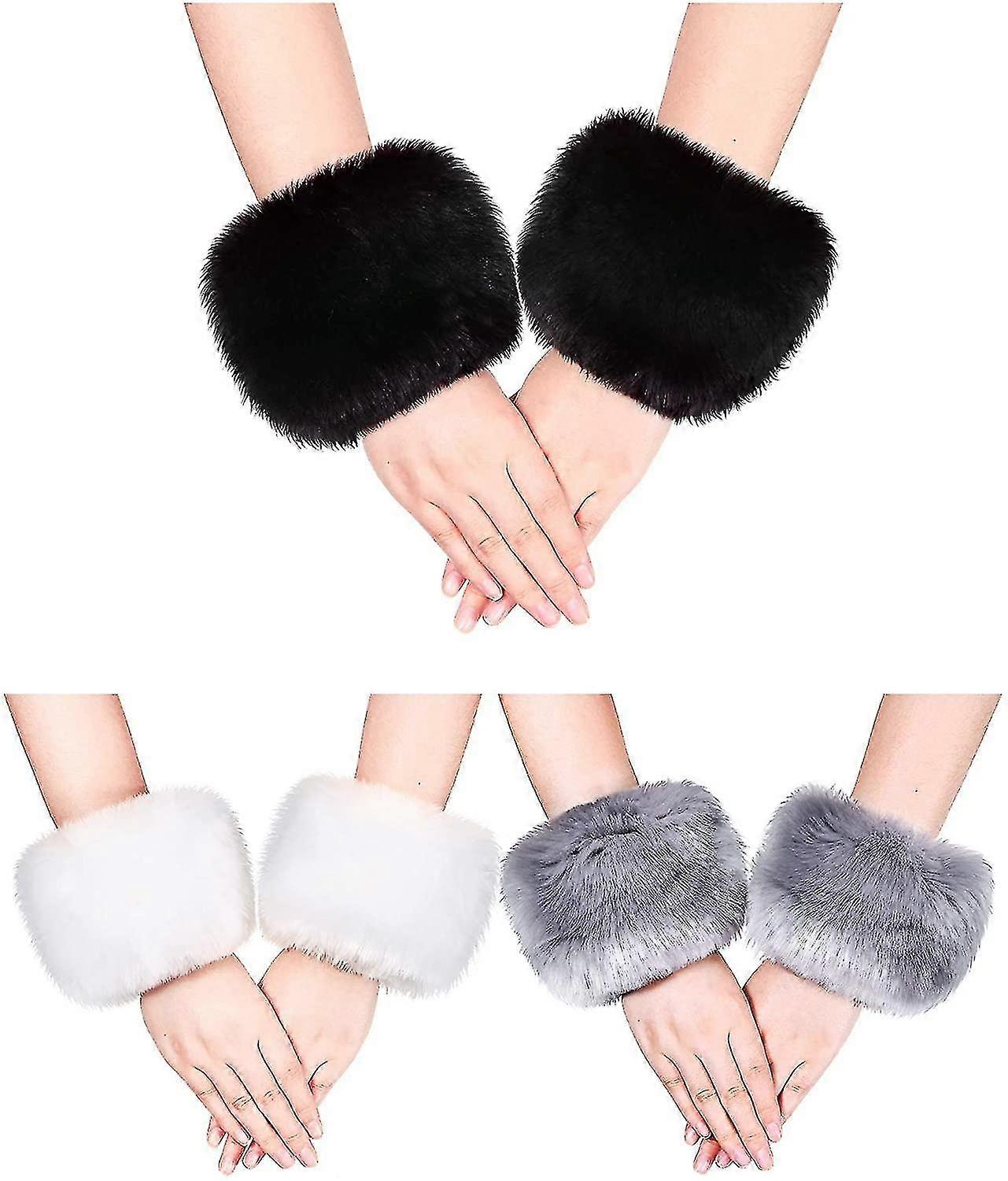 3 Pairs Faux Fur Wrist Cuff Warmers Winter Furry Wrist Warmers For Women Girls