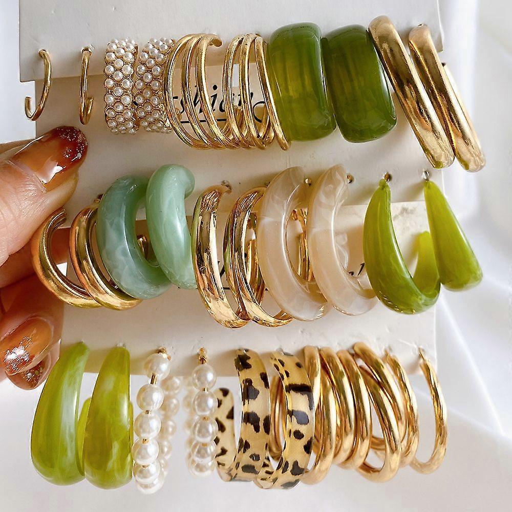 3 Pairs Bohemian Acrylic Resin Hoop Earrings Set for Women Girls Vintage Geometric Pearl Leopard Dangle Earrings
