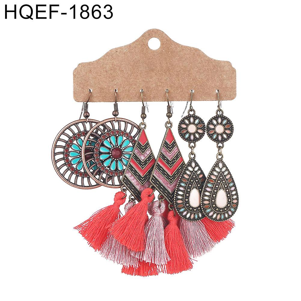 3Pairs Round Teardrop Tassel Dangle Women Ear Stud Hook Earrings Party Jewelry