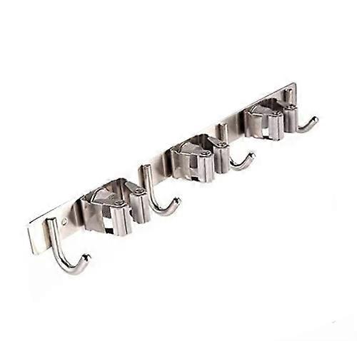 3 Racks and 4 Hooks Broom Holder Mop Hanger 304 Stainless Steel Multifunctional No Punch Laundry Storage Tool Racks