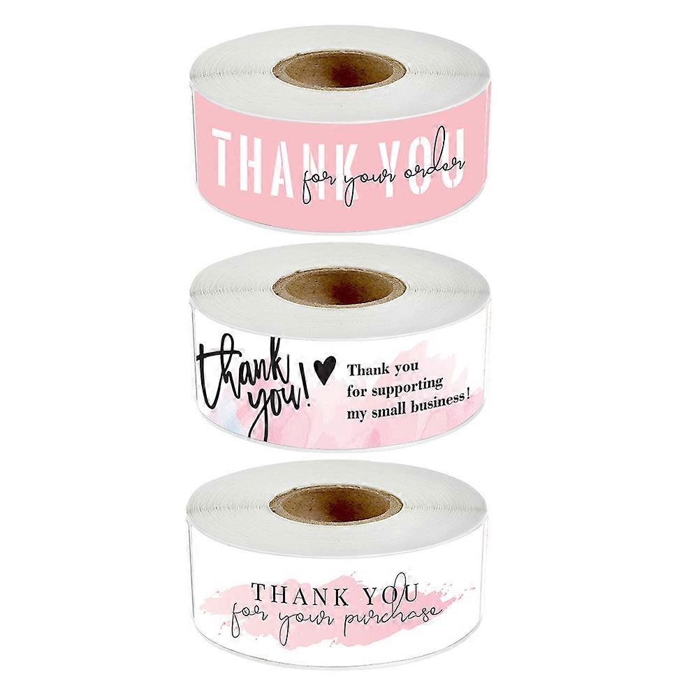 3 Rolls Thank You Sealing Stickers, Adhesive Wrap Stickers for DIY Baking, Greeting Cards, Labeling, Holiday Decorations with Delicate Patterns