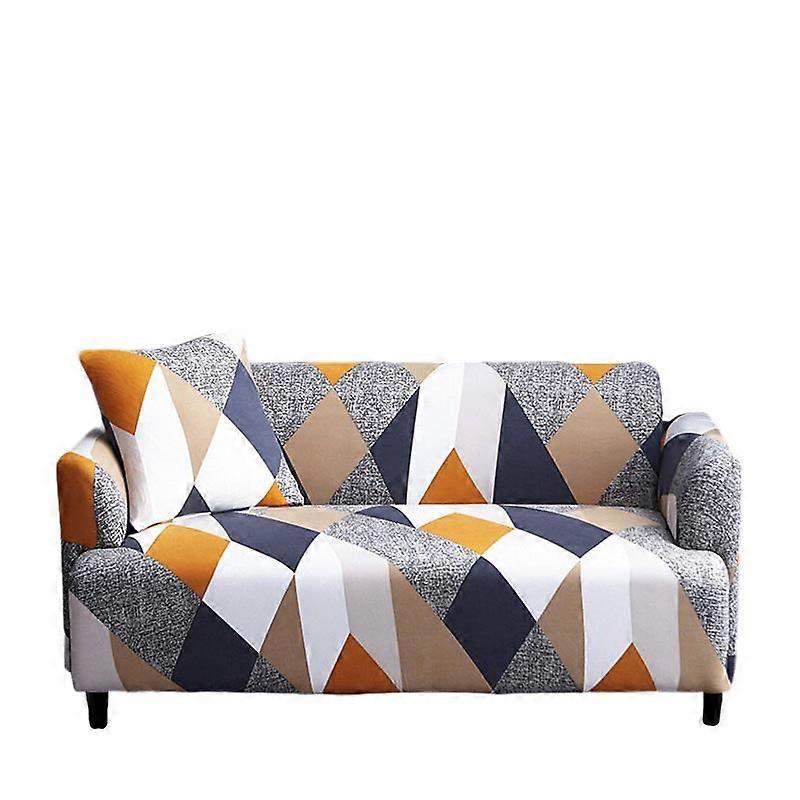 3 Seater Sofa Cover Khaki Geometric Style Elastic Stretchable Slipcover Slipcovers