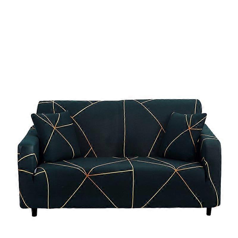3 Seater Sofa Cover Dark Green Linear Style Elastic Stretchable Slipcover Slipcovers