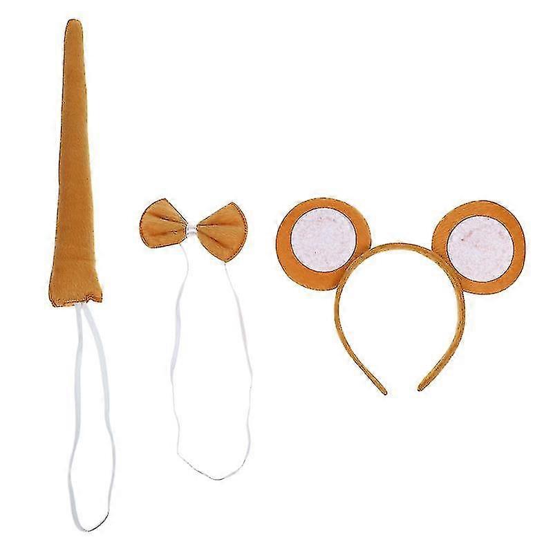 3pcs In 1 Set Cosplay Party Supplies Monkey Headband Accessory Hairwear Tail Tie Performance Masquerade Party Supplies(brown)