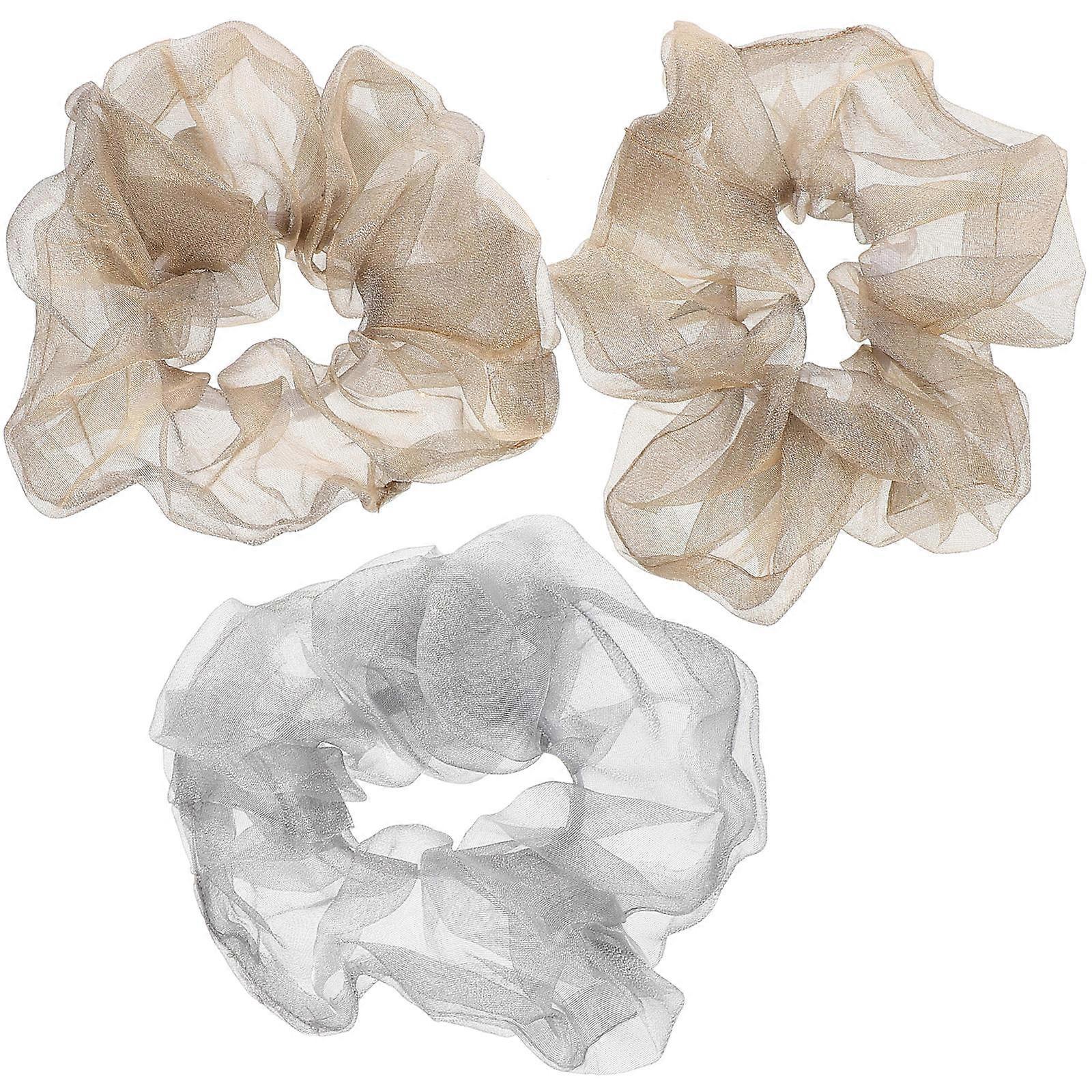 3pcs Vintage Sheer Glitter Hair Scrunchies Elastic Hair Ties for Women Grey Perfect for Parties, Weddings & Daily Wear