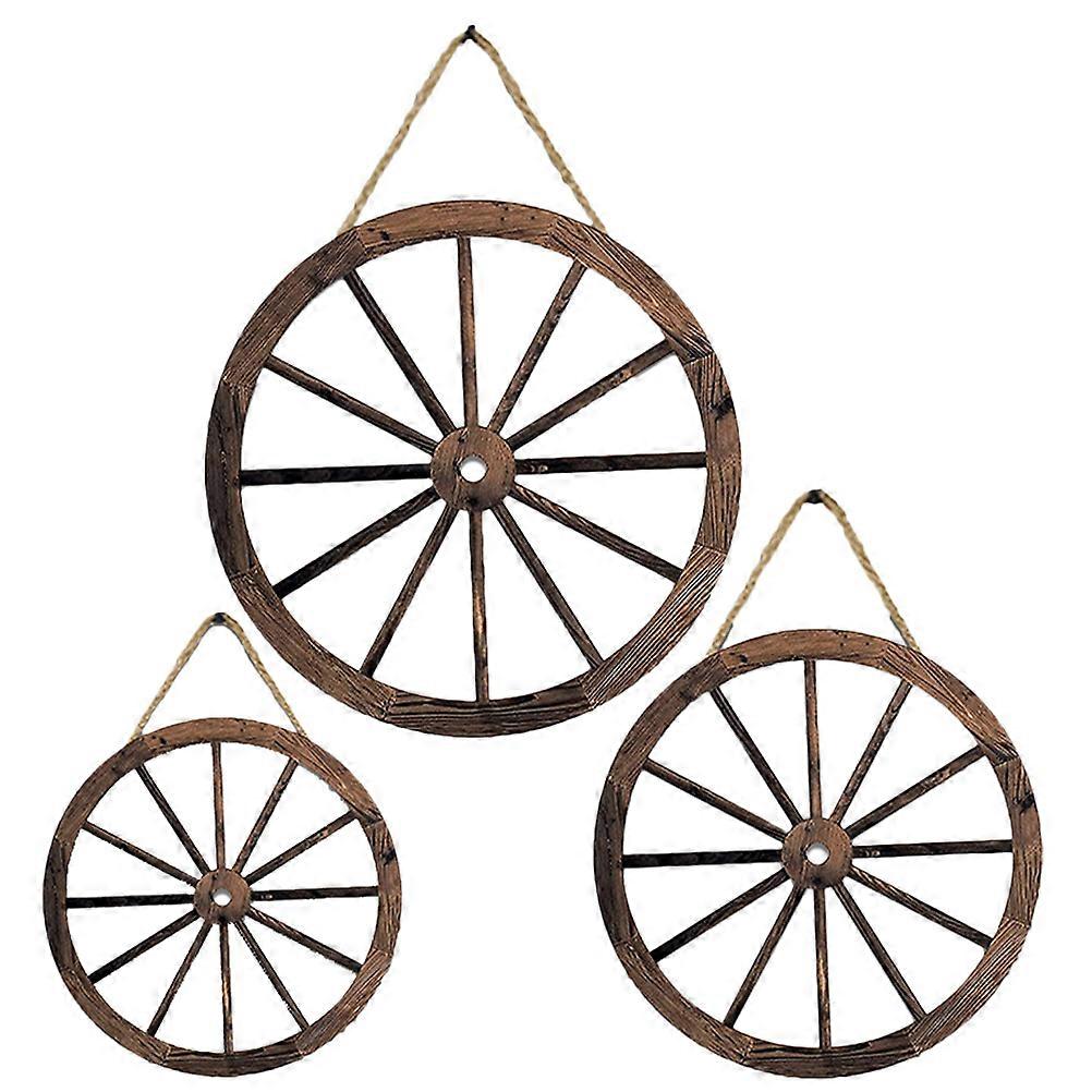 3pcs Vintage Rustic Wooden Wheel Wall Decor, Poplar Wood Hanging Ornaments for Farmhouse, Garden, Backyard, Party Decoration