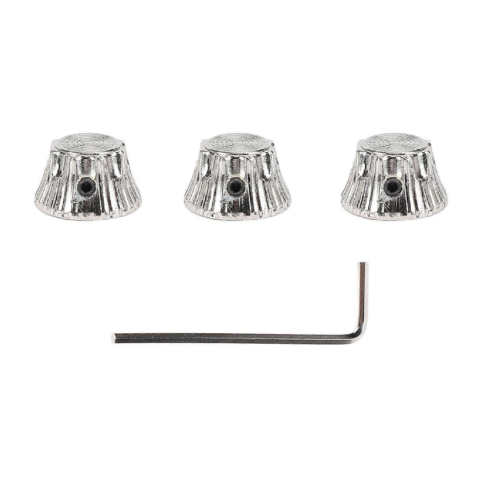 3Pcs Electric Guitar Knobs Metal Potentiometer Dome Top Hat Bell Volume Tone Control with Wrench Silver
