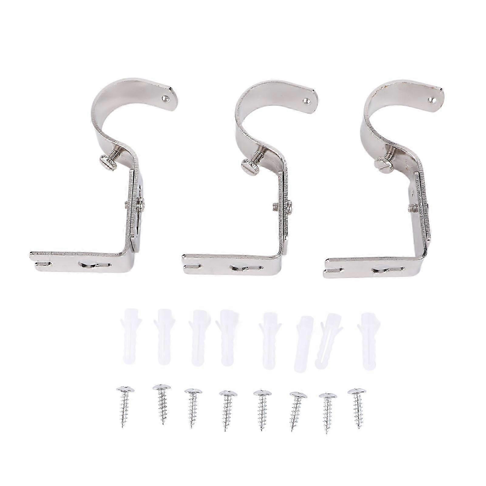 3Pcs Curtain Rod Bracket Adjustable Heavy Duty Curtain Rod Wall Bracket Hooks with Installation Screws Silver