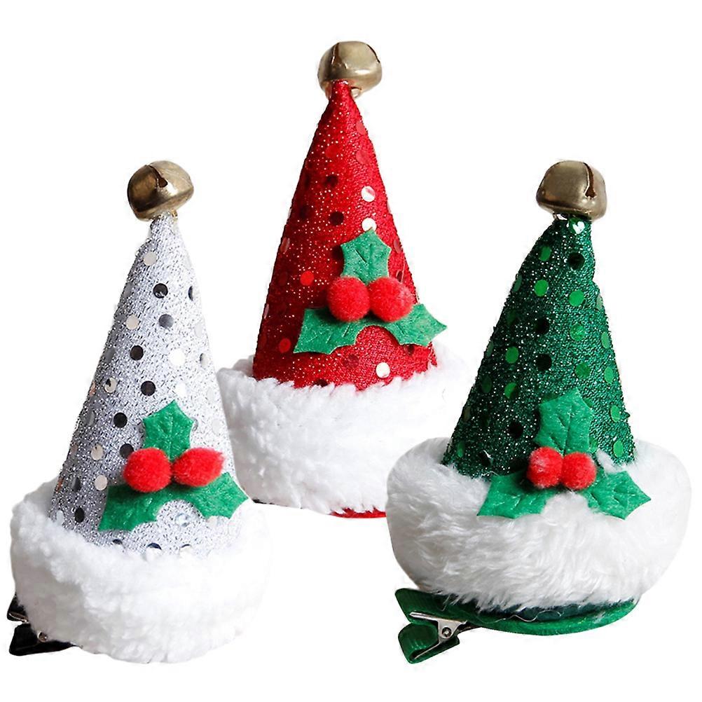 3pcs Christmas Hat Hair Clips with Bells Festive Red, Green, White Holiday Hair Accessories for Party Hairstyles