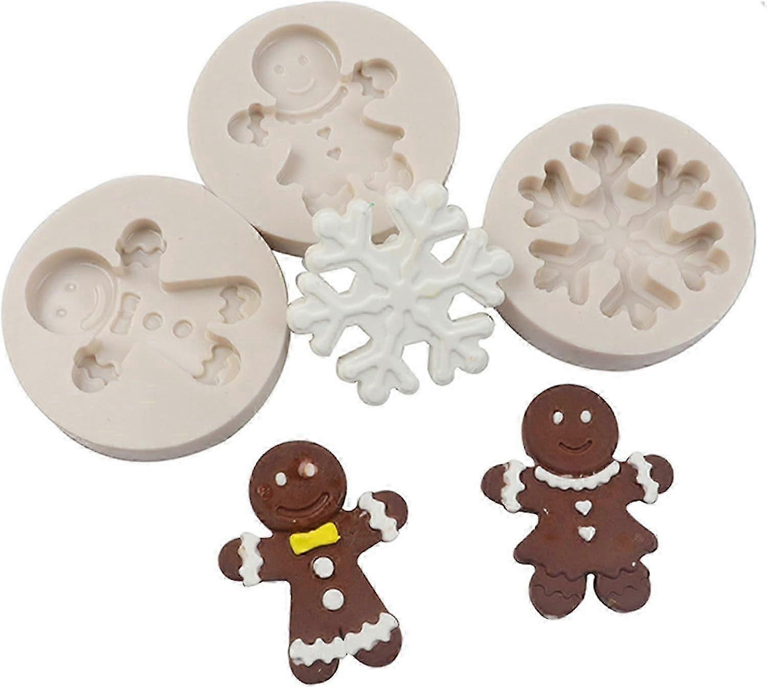 3 Pcs Christmas Fondant Molds, Gingerbread Man Chocolate Candy Silicone Mold, Kitchen Baking Cake Decorating Mold for Cupcake