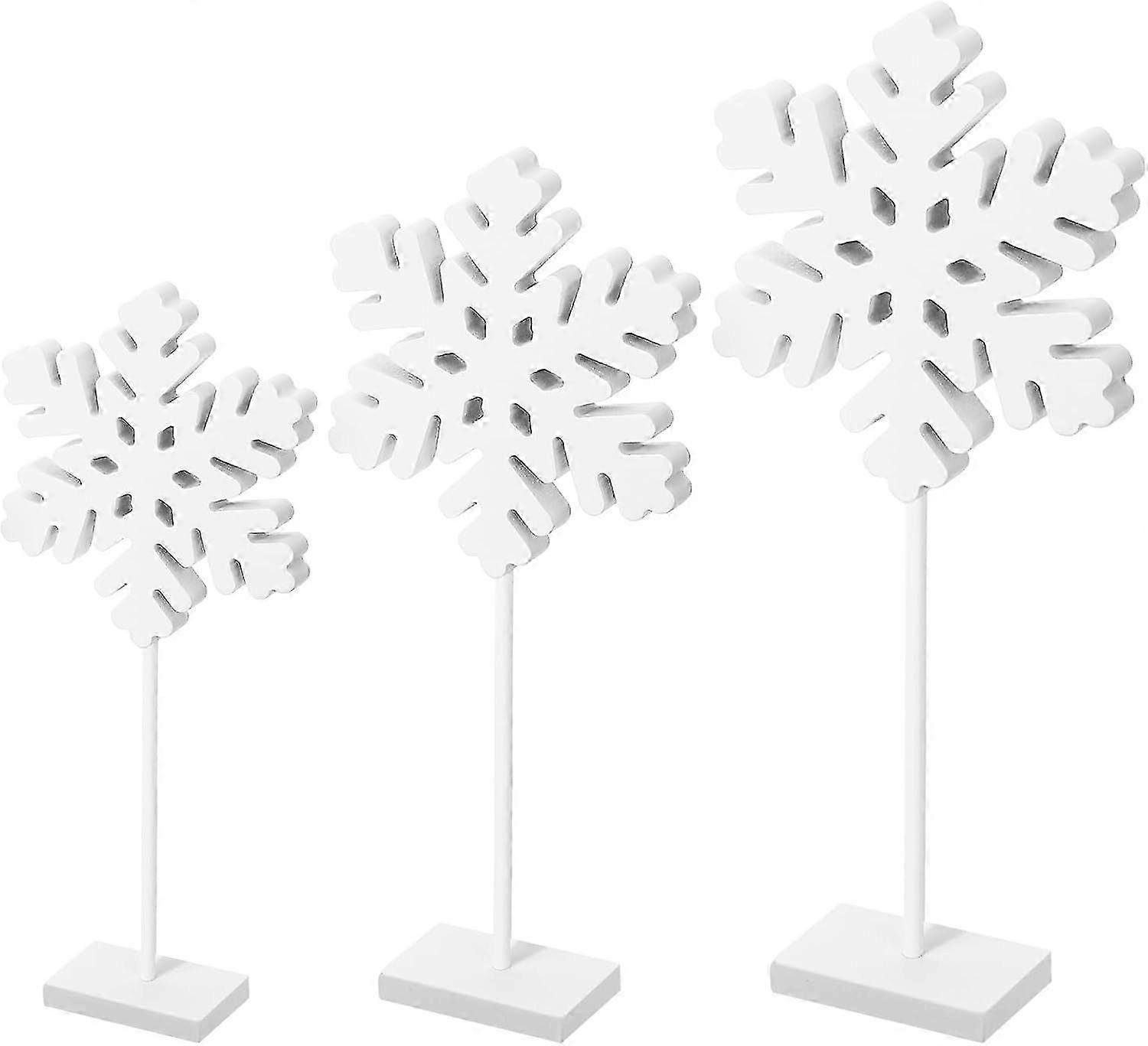 3 Pcs Christmas Wooden Snowflake Tabletop Decor Winter Snowflake Signs Standing