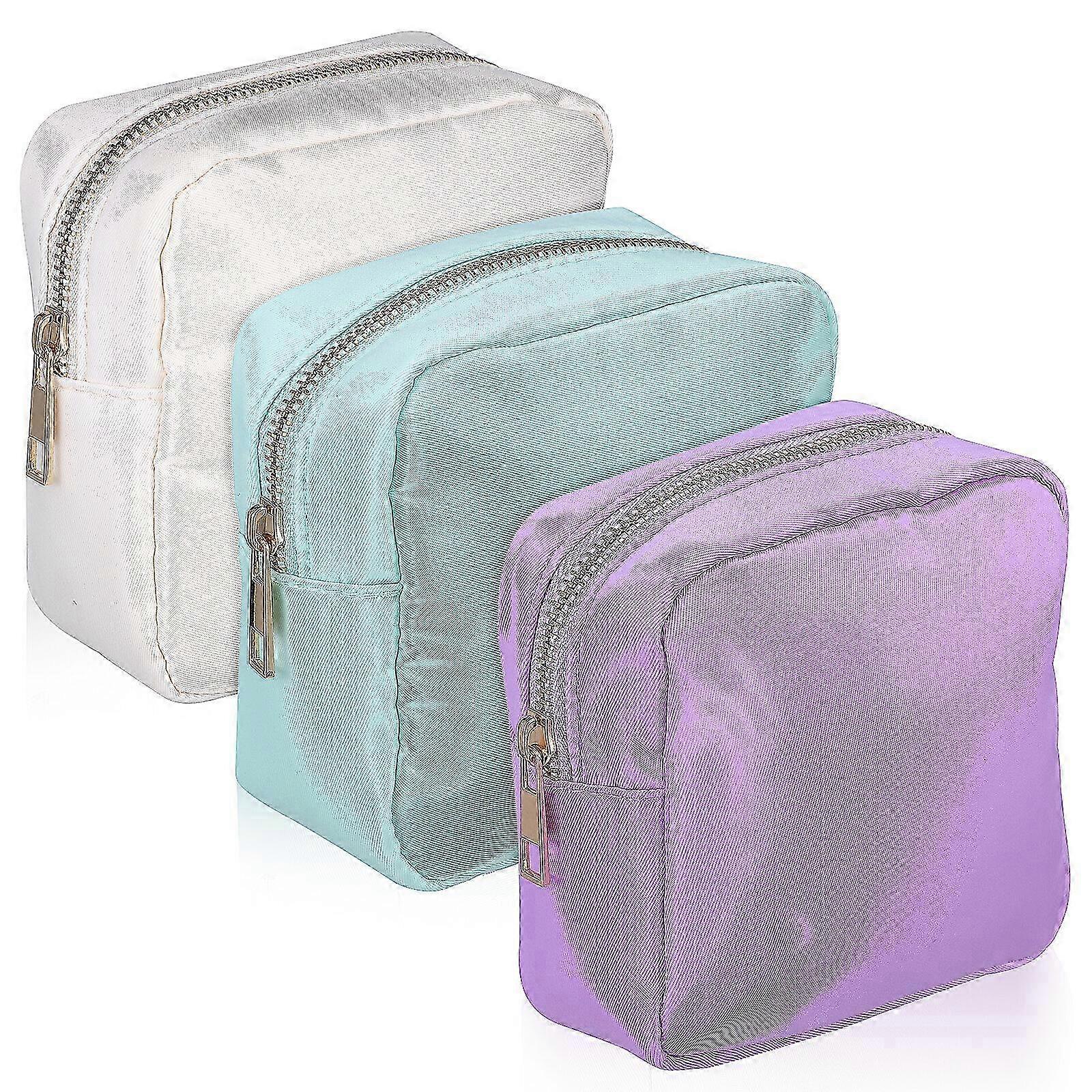 Description Introducing our versatile and stylish nylon makeup bag, suitable for all your cosmetic storage needs. Available in three refreshing colors, this bag is designed to cater to different preferences. The multi-functional design makes it ideal for storing makeup, skincare products, and other essentials. Features -Color:As Shown -Material:Nylon -Size:12.50X12.50X5.50cm/4.91X4.91X2.16in - Fresh colors: These makeup bags come in three different colors, each with a fresh and vibrant look to suit different preferences and styles. - Nylon material: The use of nylon material ensures that these bags are not only sturdy but also resistant to water, making them suitable for travel and everyday use. - Multi-functional design: These makeup bags are designed to store makeups, skincare products, and other small items, making them suitable for easy organization and travel. - Exquisite craftsmanship: The makeup bags are crafted with precision and attention to detail, ensuring that they are not only lasting but also look great. - Compact and lightweight: These nylon makeup bags are compact and lightweight, making them easy to carry around wherever you go. Packing list3 x bags