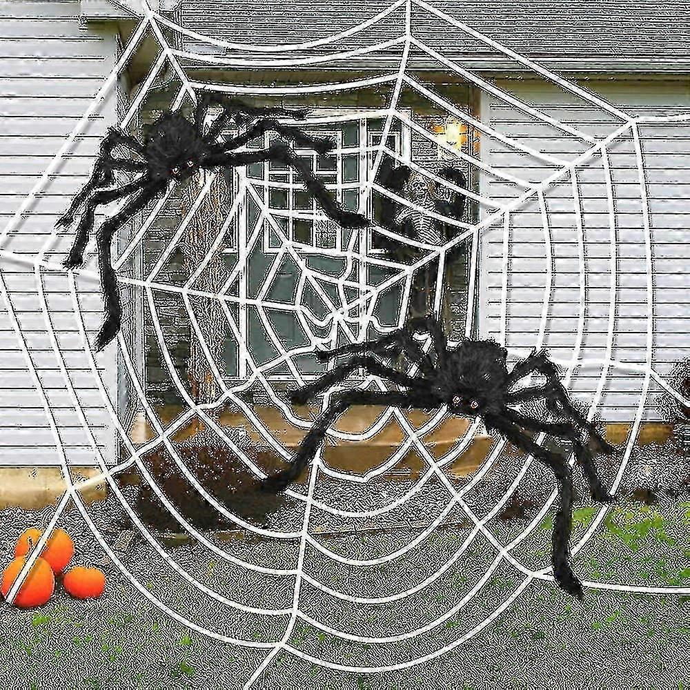 For 3pcs Halloween Spider Web Halloween Spider Decorations 142" Mega Spider Web 30" Giant Spider And Web