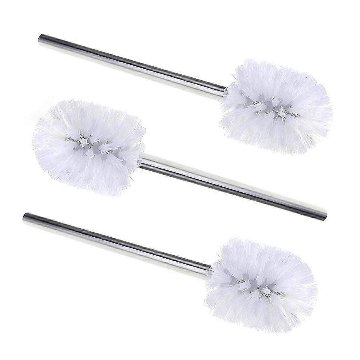 3 Pcs Plastic Toilet Brush Set with Stainless Steel Handle - White