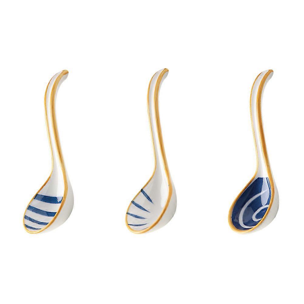 3pcs Portable Japanese Ceramic Soup Spoons, Multi Function Household Food Spoons for Ramen and Noodles, Elegant Kitchen Supplies in Retro Colors